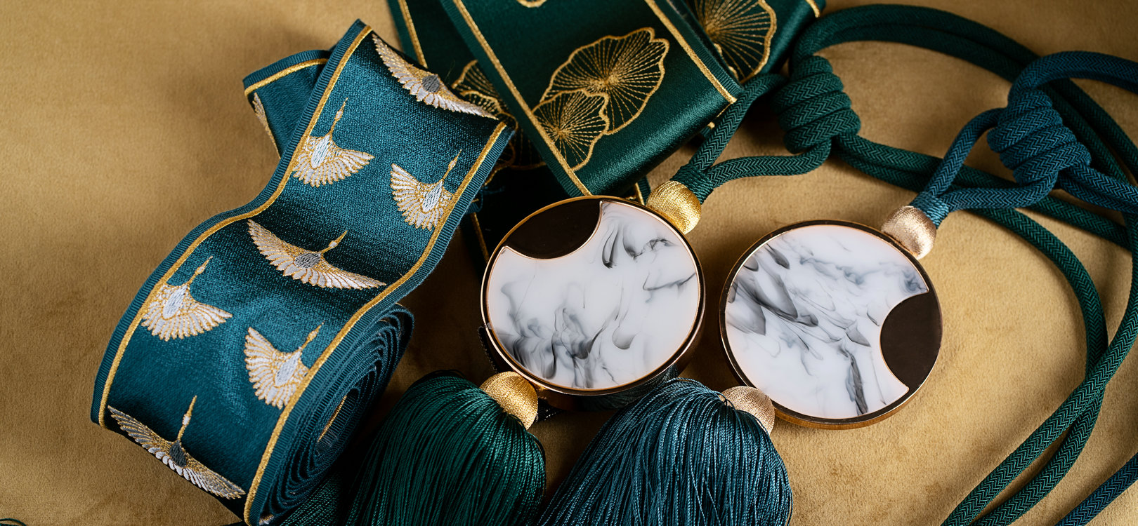 鎏金閣系列產(chǎn)品將傳統(tǒng)元素與摩登時(shí)尚的新設(shè)計(jì)相融合,以緞紋底帶呈現(xiàn)華貴光感,展示新中式的時(shí)尚與富麗堂皇。
